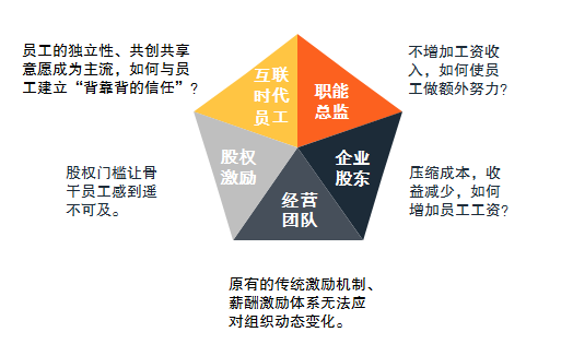 · 经营团队的两难:由于市场定位、业务模式、组织体系、价值体系调整,原有的传统激励机制、薪酬激励体系无法应对组织动态变化,难以对员工的真实贡献有效回报与激励,企业需要员工先“免费”付出,等待建立新激励体系,员工凭什么愿意?